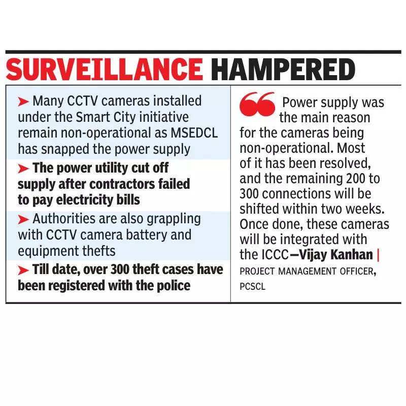 Pune: More than half of the CCTV cameras installed by the Pimpri Chinchwad Municipal Corporation (PCMC) under the Smart City initiative and other schemes remain disconnected from its integrated command and control centre (ICCC), hampering surveillance across the twin cities.Over 5,000 cameras were installed in various parts of the city, but around 2,500 of them are yet to be linked to the ICCC, a civic official said.“Many of these cameras have been non-functional after MSEDCL snapped the power supply because the contractors failed to pay electricity bills. The civic body, to address the issue, has now started transferring the power connections from the contractors to PCMC’s name,” a senior civic official said.“The power supply was the main reason for the cameras being non-operational. Most of it has been resolved, and the remaining 200 to 300 connections will be shifted within the next two weeks. Once done, these cameras will be integrated with the ICCC,” said Vijay Kanhan, project management officer at Pimpri Chinchwad Smart City Limited (PCSCL).He said that while the cameras are not connected to the ICCC, their data is stored in the local storage devices and can be accessed anytime.In Nov last year, MSEDCL also disconnected the power supply to the ICCC office due to non-payment of the electricity bill by the private contractor responsible for running the centre. The civic body later paid the bill to restore the connection.Kanhan further said theft of CCTV camera batteries and other equipment has emerged as another major hurdle.”Nearly 300 theft cases have already been registered with the police, including incidents reported on main roads and even at busy junctions like Kokane Chowk,” he said.The issue was highlighted to the Pimpri Chinchwad police through multiple letters.The Pimpri Chinchwad police, who also depend on these cameras in the absence of an independent and adequate surveillance network, are facing difficulties in crime investigations due to the issue.Activists and residents have expressed strong concern over the long-pending issue, stating that it has remained unresolved for more than a year.”Even if some cameras are technically operational, the fact that they are not connected to a dedicated surveillance centre makes them ineffective. Over 50% of the cameras are practically useless,”a resident said.Wakad resident Vikas Shinde said while the intention behind installing CCTV cameras was good, their purpose was defeated because most of them did not function at all. “The civic body should not wait for an incident where footage is crucial to find out that the cameras did not capture it. It must take proactive measures to ensure all cameras are functional,” he said.