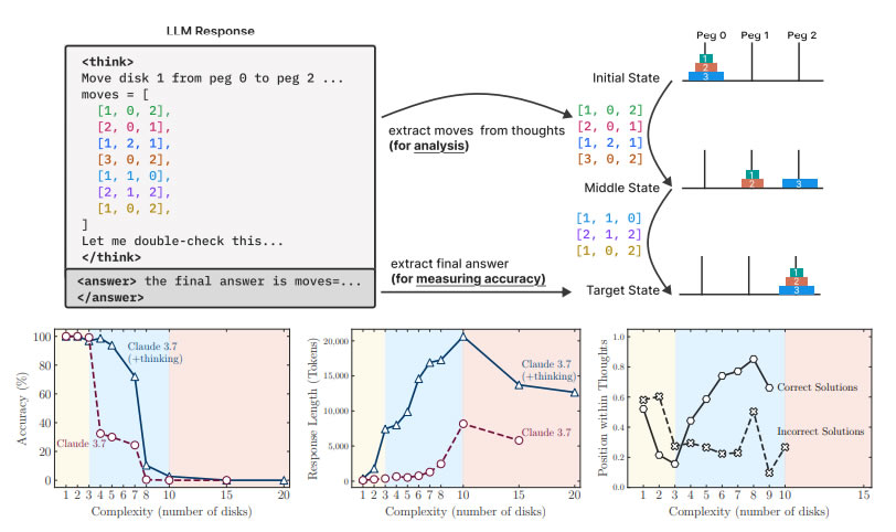 They discovered that “frontier LRMs face a complete accuracy collapse beyond certain complexities,” don’t generalize reasoning effectively, and their edge disappears with rising complexity, contrary to expectations for AGI capabilities.