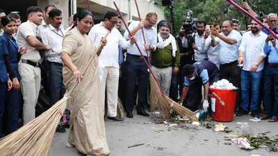 New Delhi: Expressing displeasure over the dilapidated condition of the office of the department of women and child development at Kashmere Gate ISBT, chief minister Rekha Gupta on Friday said it was time that a new, well-organised and integrated secretariat was constructed in Delhi for all govt departments. A suitable location will be identified where the new Delhi secretariat can be set up, enabling all departments to function under one roof, she added.Gupta made the statement at the launch of the ‘Delhi Ko Koode Se Azaadi’ campaign from the premises of the WCD department. “It is shocking to think how these officials, who are entrusted with ensuring good governance in Delhi, can work effectively in such deplorable circumstances. The ceilings are leaking, the furniture is broken, there are no proper chairs to sit on, cupboards are damaged, and the fans are in such poor condition that they could fall at any moment,” she observed. She also expressed concern that the building, which suffered a fire in 2021, has still not been fully repaired to date. “Are we forcing our officials to work while putting their lives at risk?” she asked. Taking a dig at the previous govt, she said, “Those who called themselves an educated govt were busy building lavish offices for themselves but failed to provide basic facilities essential for the working of our officials. The ones who spent Rs 70 crore on their own office couldn’t spend even a few crores on these departments. MCD launches citywide cleanliness campaignOver 15 major garbage-prone points across eight wards of south Delhi were cleaned as part of the civic body’s mega sanitation campaign. These included a 3 km stretch of Aurobindo Marg, IIT crossing, Lado Sarai Chowk, SSN Marg, and the road up to Radha Soami Satsang Beas in Bhati.Mayor Raja Iqbal Singh, along with MCD commissioner Ashwani Kumar and MLAs Satish Upadhyay and Gajendra Singh Yadav, picked up brooms to sweep roads and lift garbage as they walked along the major garbage points. They were joined by hundreds of people from residents’ welfare associations, market associations, NGOs, institutions, temples and religious organisations for a four-hour-long cleanliness drive covering over a 10 km stretch from Green Park to IIT, Mehrauli, Chattarpur and Bhatti mines.The mayor said that the drive would cover intensive cleanliness operations in residential colonies, markets, industrial areas, schools, colleges, slum clusters, public toilets and other public spaces. Later in the day, Singh also visited the legal department on the 17th floor of Civic Centre and took part in removing old files and electronic waste.In Karol Bagh, Civil Lines and Rohini zones—at least 180 metric tonnes of waste was collected along the railway track covering. Earlier, the civic body had signed an MoU with Northern Railway for cleaning and lifting garbage along the railway tracks and neighbouring areas.