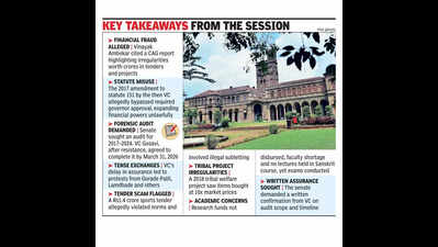 Pune: A storm of allegations involving financial fraud and corruption amounting to crores of rupees swept through the senate meeting of Savitribai Phule Pune University (SPPU) on Tuesday.The opening day of the session at Sant Dnyaneshwar Hall was dominated by fiery exchanges, with members demanding accountability over glaring irregularities flagged in the university’s financial dealings.Senate member Vinayak Ambekar led the charge and cited a preliminary report by the Comptroller and Auditor General (CAG) that pointed to massive irregularities in multiple purchase tenders and university projects.“The rights given to the vice-chancellor (VC) in the original statute 151 are for recurring expenses up to Rs50,000 and capital expenditure up to Rs25,000. In 2017, the then VC amended it and raised the recurring expense limit to Rs12,50,000 and capital expenditure to Rs25 lakh. All transactions made by him in five years under the amendment are illegal. He violated statute 151 for selfish purposes. It should be reported to the chancellor,” Ambekar said.He further said that while the Maharashtra Universities Act allows temporary amendments in case of exigency, such changes must be ratified by the governor within six months — a step never taken. According to Ambekar, the lapse gave the VC unchecked financial authority, leading to alleged misuse. The senate demanded a full financial audit of the university.Current VC Suresh Gosavi initially resisted, refusing to promise an immediate inquiry. It led to strong protests from members including Sachin Gorade Patil, Shantanu Lamdhade and Dadabhau Shinalkar. Later, Gosavi agreed to appoint an expert committee for a preliminary inquiry that would determine whether a forensic audit was needed. However, it was swiftly rejected by Ambekar and others.Gosavi had to relent amid growing pressure. “A forensic audit of the university’s finances will be conducted and submitted before March 31, 2026,” he said.The senate demanded a written assurance that the audit would cover the financial years from 2017 to 2024. Gosavi said a copy of the letter would be issued to Ambekar after the meeting’s minutes were formally recorded, leading to the conclusion of the session’s first day.Tensions were evident from the start of the meeting, which opened with discussions around the university’s declining NIRF rankings. Multiple senate members raised concerns over academic and administrative lapses. Harsh Gaikwad flagged the non-disbursal of research funding to affiliated colleges and highlighted the lack of faculty in the distance education centre. “There is no transparency in daily operations. Senate proposals rarely move beyond paper,” said Patil.Ishani Joshi raised concerns about the Sanskrit course run through the university’s external department. “Students were directed to appear for exams though not a single lecture was held,” she said. She also highlighted a shortage of faculty and inadequate institutional support.Returning to financial issues, Ambekar detailed several specific cases cited in the CAG report. One involved a Rs1.4 crore tender for supplying and installing sports equipment at the university’s shooting range. “The selected company failed to meet the preconditions. There were inconsistencies in the completion timeline and the payments made. Moreover, despite a clause forbidding subletting, the company passed on the work to another firm at a lower rate — resulting in a Rs20 lakh loss,” he said.He also raised red flags over a tribal development department project handled by the department of technology at SPPU. Ambekar said a govt resolution (GR) issued in 2018 required the establishing of a data analytics and planning centre within a year to benefit tribal students. However, the project was marred by irregular procurement practices. “The purchase committee approved items like UPS systems, air conditioners and CCTV DVRs at nearly 10 times the market price. Why?” he said.Throughout the day, the tone in the hall remained confrontational, as enate members repeatedly questioned the administration’s financial discretion and transparency. The call for accountability was unanimous, cutting across party and group lines.As the meeting adjourned in the evening, all eyes turned to Wednesday’s session, with expectations that more revelations and demands would follow. The university now faces mounting pressure to restore credibility through a thorough, time-bound audit and visible corrective action.
