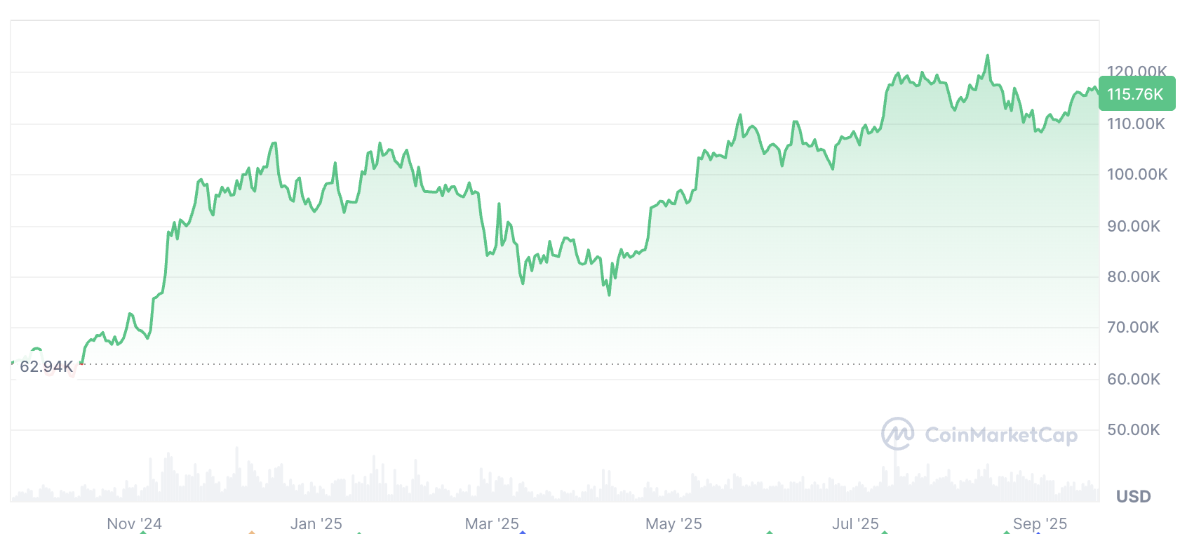 His comments come as some market participants question why Bitcoin’s price has stalled after hitting a new high of $124,100 on Aug. 14. At the time of publication, Bitcoin is trading at $115,760, close to its $114,618 price level nearly a month earlier on Aug. 21, according to CoinMarketCap.