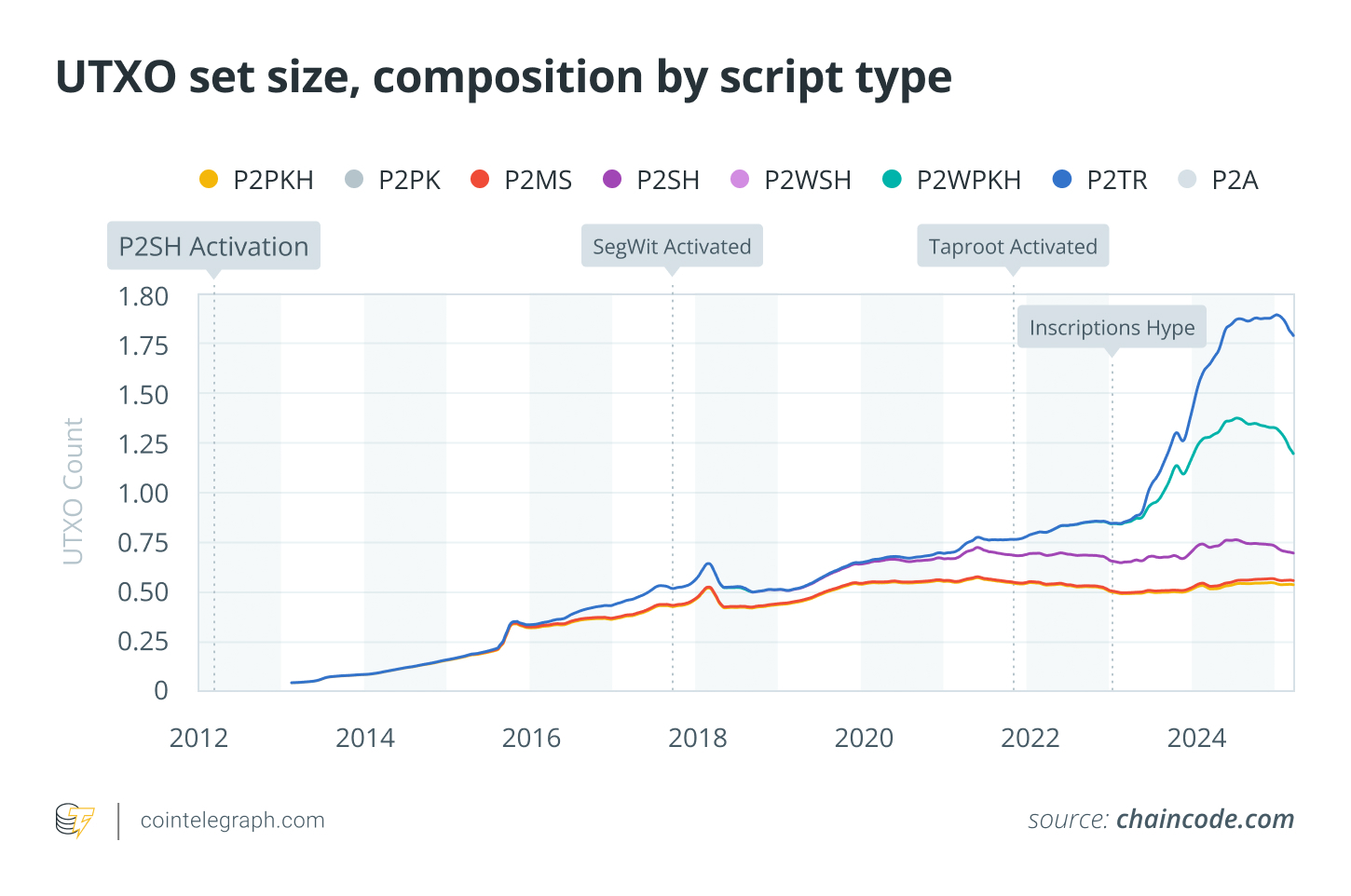 • P2MS accounts for about 1.037% of UTXOs, but reports estimate that it secures only around 57 BTC.
