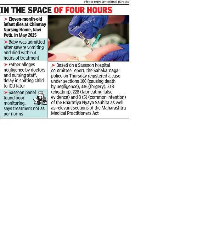 An officer from the Ravet police said that Jadhav was doing brickwork on the 2nd floor of an under-construction building at Ravet. “He lost his balance and fell. He was taken to a nearby hospital, where he succumbed to his injuries during treatment”, the officer said.He said that the victim’s wife stated in her complaint that the builder and contractor did not provide safety measures to the workers at the site. A case under Section 106 (causing death by negligence) of the Bharatiya Nyaya Sanhita (BNS) was registered against the duo. “Our investigations are on,” he said.