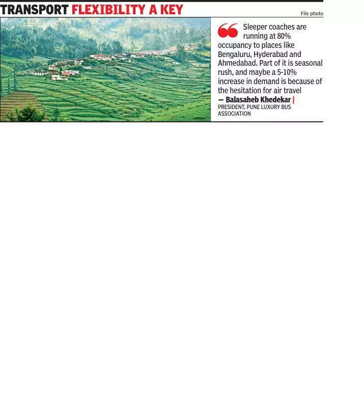 Pune: Travel operators are witnessing a surge in bus bookings owing to the flexibility and reliability of transport, the convenience of access to hill stations, and cost-effectiveness. The hesitation to book flights after the recent crash has also fuelled demand for bus travel.Devenshi Saluja, a resident of Baner, planned a last-minute bus trip to Goa and Varkala. “There have been many turbulence-related incidents in flight travel. I have an overall hesitation to fly following the recent air accident, as well. My bus journey was comfortable, and bookings were also easily available,” she said.“We usually take a flight but this time, we have booked a bus for our journey to Coimbatore. We plan to visit nearby hill stations which turn lush green during the monsoon,” said Nirav Kulkarni, a resident of Kothrud.While refusing to attribute the reason behind the surge in bus bookings to the hesitation to take flights, Rohit Sharma, COO of AbhiBus, said, “We’re seeing a clear uptick in bus bookings to popular monsoon destinations. Places like Bekal are witnessing a 100% year-on-year surge. Destinations such as Ooty, Coimbatore and Wayanad are also seeing strong interest, with an average 30% year-on-year uptick in bus bookings.”Rikant Pittie, co-founder and CEO of EaseMyTrip, said they have seen a 10–12% increase in intercity bus travel demand in the last month alone. “One reason might be the fear of air travel because of turbulence and safety incidents, especially during monsoons. Also, we have observed that road travel for shorter distances has become the preferred mode, particularly for regional and religious travel in this season,” he said.Travel operators said passengers are preferring intercity sleeper and AC luxury buses.Balasaheb Khedekar, president of the Pune Luxury Bus Association, said there has been an increase in demand for long-distance buses. “Sleeper coaches are running at 80% occupancy to places like Bengaluru,Hyderabad and Ahmedabad. Part of it is seasonal rush, and maybe a 5-10% increase in demand is because of the hesitation for air travel,” he said.Operators are also expecting robust demand for bus bookings during the upcoming festive season. The second half of the calendar year is traditionally a peak season for bus travel, due to festivals and extended holidays.“We expect a 30-35% increase in demand for bus travel from Aug to Dec,” a bus operator said on the condition of anonymity.