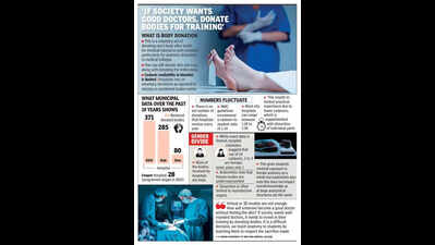 Mumbai: In the city’s most sought-after medical colleges, the anatomy hall has long been crowded. First-year students often find themselves craning from behind, straining to catch a glimpse of the cadaver. With too many students and too few bodies, practical lessons in whole-body dissections are more about learning by peeking than hands-on experience for most.Gaurav (name changed), who moved here from Gondia and recently completed his first year at Grant Medical College (JJ Hospital), says conditions remain much the same as a decade ago, just as a senior resident doctor, an undergraduate student there in 2015, recalled having to stand on stools to see the dissection.The cadaver-to-student ratio at JJ hovers at 1:30, 1:25 or 1:20 in a good year, well short of the National Medical Commission recommended 1:10. There are 250 seats there, last year they received 10 bodies while the annual demand is 25.Hospitals under the BMC face a similar ratio. Anatomy professors say body donation numbers began rising a decade ago but have remained stagnant over the years. These too reach hospitals due to efforts by civil society organisations.Previously, hospitals mostly depended on unclaimed bodies of unidentified people, which started declining around the same time due to more availability of identification documents. The Maharashtra Anatomy Act allows for bodies to be donated to hospitals if there are no claims made by relatives. Police generally wait for a month by storing the body at -20 degree Celsius.For BMC hospitals, the arrangement was peculiar. “A large number of patients at Sewri TB Hospitals used to be abandoned by families, many times their identification used to be missing. After waiting, the hospital used to allow us to take those bodies,” said an anatomy professor from KEM Hospital. As police work has also improved over the years combined with improved medical treatment, unclaimed bodies at TB hospitals have shrunk. In 2022, only eight bodies were unclaimed; the latest data was unavailable.Cumulative data show over the past decade, KEM received the maximum body donations in the city at 371. Nair Hospital followed with 285, Sion 80, and Cooper the fewest, at 28, as the donation programme there began only in 2023. Year-on-year data was not provided by BMC.Expansion in medical education in the state, including new colleges in Mumbai, Alibaug and Ambernath, has added fresh pressure on the system. Hospitals like GT, which started the first batch with 50 seats last year, are able to manage as they only need five bodies. “We have relied on the police surgeon who provides us with unclaimed bodies, but as our seats increase, we will need donations,” said hospital dean Dr Jitendra Sankpal.Others are severely struggling. An anatomy professor from the new govt college in Ambernath said. “We only had one body, that too unclaimed, from Mumbai, for 100 students in the first batch. We are trying to arrange more as the new batch is about to start.”Most students there had to rely on studying individual body parts transported from JJ rather than learning from whole-body dissections. The professor said studying separate body parts makes it hard for students to understand the body’s internal functioning.Gaurav agreed the situation in the city is not as bad as the periphery, but not everyone gets equal access in anatomy classes. The sessions are held in batches of 25; only four actually perform the dissection while the rest watch. “It is those four that become good at dissection because they do it frequently. The others are just there. Some can hold on to their curiosity in such situations, but most lose interest in learning,” he said. His batchmate Ana (name changed) said dissection also has an inherent limitation: “Once a part is removed, there is no reversing it.”Dr Ashwini Jadhav, head of JJ’s anatomy department, said the hospitals try to meet the deficit every year, but very little is in their hands. “People need to be more aware about body donation. We make students take a pledge on the first day on respecting this donation at every point,” she said.Purushottam Pawar, from the Federation of Organ and Body Donation, has played a key role in increasing body donation numbers. “We hold lectures and try to convince people; many sign up for it. There is no pledge needed. It is entirely up to the relatives. They just need to contact us or the anatomy department of hospitals.” Recently, the body of Laxmikant Joshi, former deputy director under the department of fisheries, was donated to JJ Hospital. Speaking to TOI, his son Shekhar said, “My father had a scientific mind. When my mother passed, he felt death and the rituals that followed had become a business. He didn’t want the same for him. We decided to overcome our emotions and stay true to his wishes of body donation.”