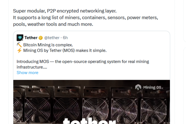 Stablecoin issuer Tether has released its open-source Bitcoin mining software, describing it as a means to simplify and scale Bitcoin mining while promoting further decentralization in the sector. In a post on X on Monday, Tether announced the rollout of MiningOS (MOS), stating that the software stack is a modular, scalable operating system built for…