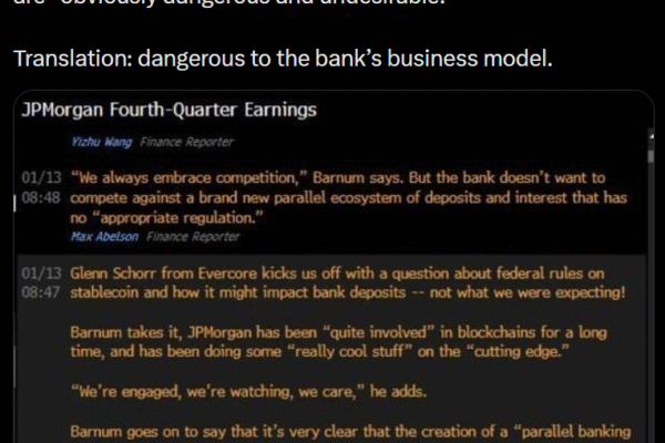 A sharp fault line is forming across the digital asset industry between crypto products that increasingly resemble regulated financial institutions and a traditional banking sector warning that some of those innovations may be going too far. That tension is on full display this week. JPMorgan is cautioning that yield-bearing stablecoins risk recreating core banking functions…