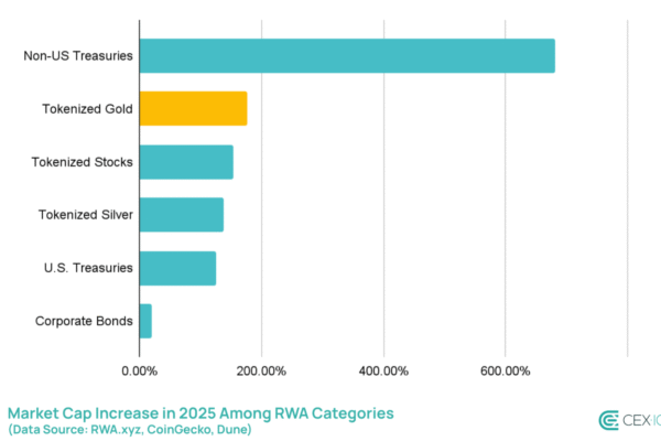 Tokenized gold emerged as one of crypto’s fastest-growing asset classes in 2025, accounting for a quarter of all net growth in real-world assets (RWAs). The market capitalization of tokenized gold jumped 177% over the past year, while the number of holders nearly tripled, with more than 115,000 new wallets added during the year, outpacing most…
