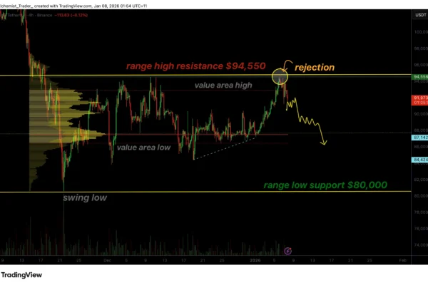 Bitcoin price is stalling at key resistance, and repeated rejections combined with weak momentum keep price range-bound, with $80,000 emerging as the key downside level. Summary Bitcoin continues to reject key resistance near recent highs. Weak bullish volume suggests the rally lacks conviction. A confirmed rejection could trigger a rotation toward $80,000 support. Bitcoin (BTC)…
