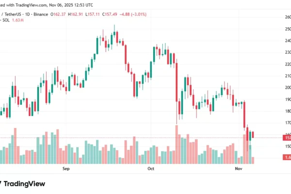 Solana has come under pressure this week, trading around $158, just near a key support at $160. The coin recently struggled to hold near $185, even with excitement over reports of a new Solana staking ETF sparking short-term institutional interest. Traders are now keeping a close eye on whether ETF optimism and staking demand can…
