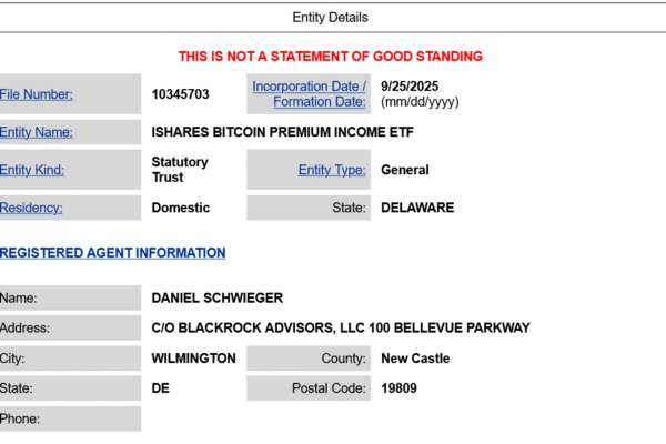 Asset management giant BlackRock filed to register a Delaware trust company for its proposed Bitcoin Premium Income ETF on Thursday, signaling a push to broaden its Bitcoin offerings. Bloomberg ETF analyst Eric Balchunas said BlackRock’s proposed product would sell covered call options on Bitcoin futures, collecting premiums to generate yield. The regular distributions would, however,…