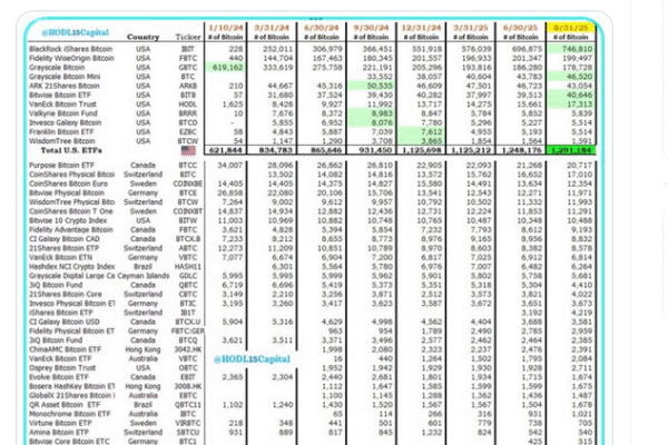 Bitcoin exchange-traded products (ETPs) now hold more than 1.47 million Bitcoin, amounting to 7% of the cryptocurrency’s maximum 21 million coin supply. US-based exchange-traded funds for Bitcoin (BTC) have scooped up the largest share, with their holdings exceeding 1.29 million BTC held across all 11 funds as of Sunday, Aug. 31, according to data shared…