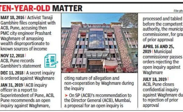 Pune: The Bombay high court has quashed and set aside Pune municipal commissioner’s orders of April 16 and 25, 2019, that rejected an open inquiry by the state anti-corruption bureau (ACB) against former city engineer Prashant Waghmare on the allegations of amassing assets disproportionate to his known sources of income.The bench of Justice AS Gadkari…