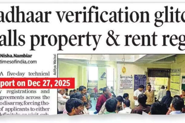 Pune: Registration officials on Monday said the issues affecting Aadhaar-based online verification for property registrations have been caused by a technical problem at the state department of information technology (DIT) and not by any fault at UIDAI, adding that steps are being taken to resolve the glitch at the earliest.People across Maharashtra have been facing…