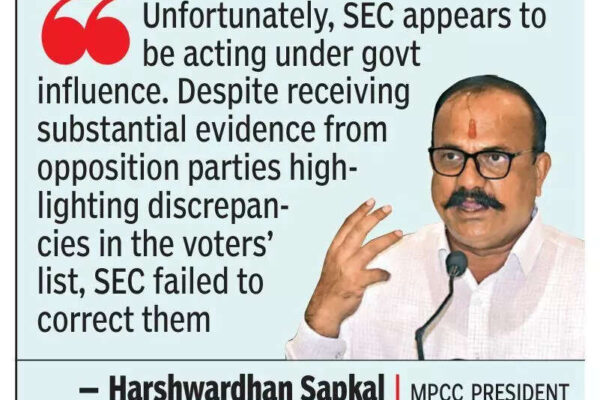 Pune: Opposition parties on Tuesday criticised the State Election Commission (SEC), alleging that the polls to 246 municipal councils and 42 nagar parishads were being rushed despite the alleged discrepancies in the voters’ list. Mahayuti members, however, expressed optimism about winning the upcoming elections scheduled for Dec 2.State Congress president Harshwardhan Sapkal said SEC has…