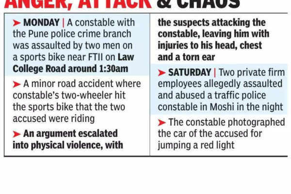 Pune: A constable with the crime branch of the Pune police was left with a torn ear and injuries to his head and chest after two men on a sports bike assaulted him near the Film and Television Institute of India (FTII) on Law College Road around 1.30am on Monday, following a minor road accident….