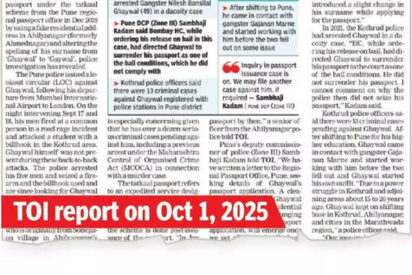 Pune: Gangster Nilesh Ghaywal changed his address on Aadhaar card before applying for a passport in 2019, deputy commissioner of police (Zone III) Sambhaji Kadam said on Saturday. The revelation came amid an ongoing investigation into how Ghaywal managed to obtain a passport from Ahilyanagar despite having multiple criminal cases against him.“Ghaywal, who faces 13…
