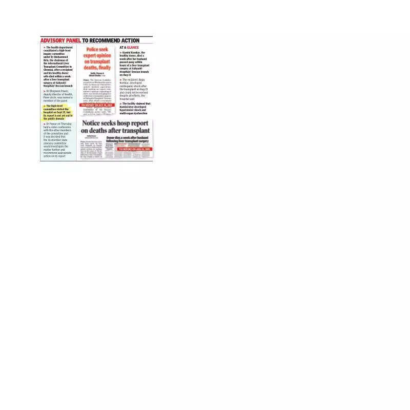 Pune: The Deccan Gymkhana police on Friday said they would look at other govt hospitals’ panels to seek opinion on alleged medical negligence in the deaths of a recipient husband and his donor wife following a liver transplant surgery at Sahyadri Hospitals’ Deccan branch in Aug, a day after Sassoon authorities expressed their inability to give a view because the facility lacked experts. “The Sassoon hospital authorities wrote a letter informing us that it does not have experts like gastroenterologist and liver surgeon. We are now planning to approach other govt hospitals like JJ Hospital in Mumbai, to seek expert opinion in the matter,” senior inspector Girisha Nimbalkar of the Deccan Gymkhana police said. Dr Yallapa Jadhav, medical superintendent, Sassoon General Hospital, wrote to the Deccan police on Thursday stating that the facility lacked experts to investigate the matter, a day after the police requested the facility to formulate a medical negligence committee to look into the deaths. Dr Jadhav said, “We have written back to the police station stating that we do not have a gastroenterologist or a liver surgeon expert, whose valuable opinions would be needed to investigate the matter thoroughly. We have asked them to refer this case to another institute.”Sassoon, western Maharashtra’s apex tertiary care hospital, is one of the oldest medical colleges in the country.The death of the Komkar couple after a liver transplant surgery at the Sahyadri Hospitals shook the city in Aug. The recipient, Bapu Komkar, died on Aug 15, a few hours after the procedure. His wife and donor, Kamini Komkar, passed away on Aug 22. Sahyadri Hospitals’ live liver transplant licence was suspended in late Aug following the twin deaths.After the relatives of the deceased accused the private hospital of negligence, the health department constituted a high-level inquiry committee under Dr Mohammed Rela, the chairman of the International Liver Transplant Committee in Chennai. Dr Bhagwan Pawar, deputy director of health, Pune circle, was named a member of the panel. The high-level committee visited the hospital on Sept 25, but its report is not yet out in the public domain. Dr Pawar on Thursday held a video conference with the other members of the high-level committee and it was decided that the 16-member state advisory committee would investigate the matter further and recommend appropriate action on its report. The advisory committee would be led by the health secretary and include members of the State and National Organ Transplant Coordination Committee, legal experts and other highly qualified medical experts. The decision to send the high-level committee’s report to the state advisory committee for appropriate action and Sassoon’s inability to investigate if there was any medical negligence in the procedure have left the relatives of the deceased livid. Balraj Wadekar, the brother of the deceased donor, said, “We keep reading in newspapers about formation of new committees to look into my sister’s death, but nothing much is happening in reality. My sister, Kamini Komkar, was healthy. She had walked into the hospital to donate a part of her liver to save her husband. Within a week, we lost both. We suspect that the administration is delaying action or passing the files from one department to another because a big hospital is involved in the tragedy.”