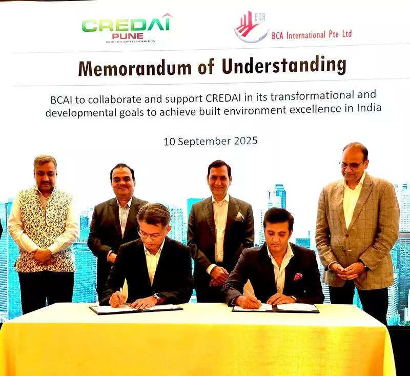 Pune: The city chapter of the Confederation of Real Estate Developers’ Associations of India (Credai) has partnered with a subsidiary of the Singapore-based Building and Construction Authority (BCA). The collaboration aims to develop sustainable, innovative, and high-quality building practices in India’s real estate and construction sector. The memorandum of understanding (MoU) was signed on Wednesday this week in Singapore with subsidiary BCA International’s (BCAI) executive director Heng Teck Thai and Credai Pune president Manish Jain. BCAI promotes overseas collaborations by sharing expertise in sustainability, productivity, construction quality, and advanced technologies. As per the latest MoU, BCAI will facilitate Green Mark certifications for Credai members, promoting super low energy buildings (SLEB). It will also deliver customised training programmes, site visits, and best practice exchanges focused on green building standards, construction quality, and advanced construction techniques. The collaboration will further enable Singapore-based firms to partner with Credai members on sustainable, innovative, and smart building solutions in India. It will support development of a centre of excellence promoting cutting-edge construction technologies.Commenting on the development, Jain said, “This collaboration marks a significant step towards Credai Pune’s vision of promoting sustainability, innovation, and global best practices in construction. Partnering with BCAI will help our members adopt international benchmarks and move closer to India’s Net Zero commitments.”