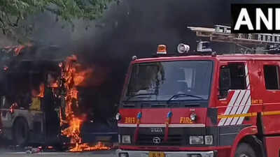 NEW DELHI: At least 10 passengers narrowly escaped after a Delhi Transport Corporation (DTC) bus caught fire in the Mori Gate area on Friday, officials said.According to the bus conductor, the vehicle was traveling from Narela to Mori Gate when he noticed a technical snag, which later resulted in the fire. “I immediately informed the depot staff, and they advised me to stop near Mori Gate for a technical check. As soon as I halted, a passenger alerted me about the fire. We quickly opened all the doors and evacuated everyone,” said Ajay Hooda, the bus conductor. Even though the fire completely engulfed the bus, no injuries were reported, he added. (With agencies inputs)