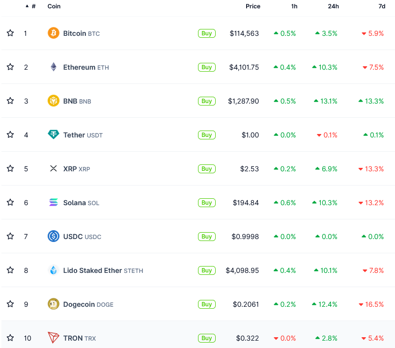 Synthetix (SNX) briefly rose over 100% — eclipsing its pre-crash price level and even setting a new 2025 high — while a few other smaller-cap coins like Mantle (MNT) and Bittensor (TAO) increased over 30%.