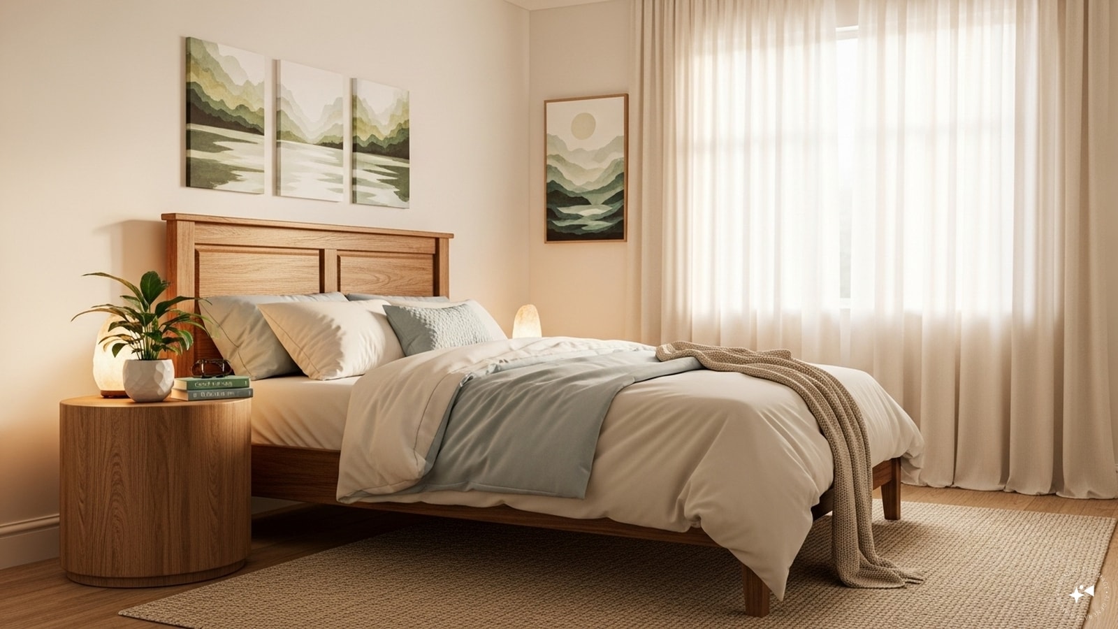 Correct Placement of the Bed: The placement of the bed is crucial in Feng Shui, as it symbolizes peace, love, and prosperity in a person’s life. The bed should be placed where the door is visible, but you should not sleep directly facing the door. Sleeping facing the door can transmit negative energy and negatively impact your sleep and mental state. (Image: AI-Generated)