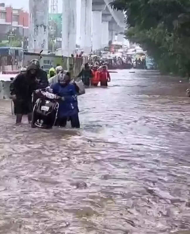 Pune: Perennial traffic snarls, waterlogged streets and crater-like potholes leading to a frustrating commute has become a daily reality for hundreds of IT professionals trying to get to and from their offices or homes in Hinjewadi — especially amid rainy conditions.Crowned as Maharashtra’s largest IT park, the Rajiv Gandhi Infotech Park in Hinjewadi has crumbled under the heavy downpour witnessed by the city late in May. Techies told TOI they have been taking two hours on average to finish a journey that usually requires 40 minutes. Many were even seen wading through water to get home after work. Unfortunately, such flash flooding is not new to this area.Stretches under water hide dangerous craters“The waterlogging situation during rain has been the same across Hinjewadi for at least four years now. In fact, this year, areas in Phase 3 that did not get waterlogged last year also saw flooding. Most internal roads are buried by water even after just 30 minutes of heavy rain,” Navanath Dharam, an IT professional working in Phase 3, said.“This is not only damaging our vehicle engines but makes potholes invisible. It is a big risk for two-wheelers. Traffic is a problem round-the-clock due to poor roads,” he added.For most having to travel to Hinjewadi daily, there are no alternative routes. As vehicles forge cautiously through waterlogged spots in fear of potholes, the traffic can pile up for as long as 2-3km.Unfinished & ongoing works a hindranceAccording to IT professional Ashutosh Pandey, not only does barricading for ongoing Metro work shrink the already narrow carriageway width of roads here, but it is also an accident waiting to happen. A native of Lucknow, Pandey left Pune recently for a break after getting frustrated by the commute he has to endure on a daily basis.“I will return only after a month. Every part of Hinjewadi is waterlogged. The other day, I had to wade through stomach-high water — a health hazard. In such conditions, using your own vehicle is a risky task, but travelling by buses means longer commute hours, irregular timings and fear of being stranded if the bus breaks down,” he said.“To add to this, Metro barricading is not always properly done, so there are spots where iron rods are sticking out dangerously. Several freshers who just joined our company might brave the dire conditions to get to work and ensure job security — but they are putting themselves at risk an accident daily because of poor infrastructural work. Things are well-managed in other IT areas. Why can’t local authorities in Hinjewadi learn from other neighbourhoods to manage water run-off?” asked Pandey. Absence of police staff compounds hasslesWhenever there is a heavy downpour, everything from Hinjewadi’s internal roads to service roads leading to the IT park are submerged under water. “Bhumkar Chowk en route is infamous for being flooded after just a few minutes of rain and so are some stretches in Hinjewadi itself. The fact that this is common knowledge should make it easy for police personnel to manage traffic. However, when rain spells are heavy, there is no one on the ground managing vehicles. During peak hours, roads could be widened by adding an extra lane from the side that is not crowded to clear traffic faster,” said IT professional P Kulkarni.“There’s always this uncertainty of when one will reach home, which is affecting a lot of people, especially those dependent on public transport,” Kulkarni added, and said, “Officials tried last year to fix some stretches, but these works don’t stand the test of time. Some craters are very deep — when puddles cover them, there is no way of knowing where they are and how risky they might be to navigate vehicles.”Multiple governing bodies, no improvementThe fact that there are so many local governing bodies running this zone is a big problem, said residents and commuters. They claimed there is no communication between various agencies, so commuters suffer the most in the absence of solutions.“Roads in Hinjewadi were dug up around five months ago and not fixed again. These spots are now waterlogged and difficult to drive through. There is a bus stop in Phase 3, next to which some digging took place a few months ago. This was also left as is — standing at the stop is near impossible. Wherever repairs are done, they turn out to be temporary and get washed off by a few showers,” IT professional Dhiraj Bahirwade told TOI.“Authorities need to actively start working on road repairs well in advance and complete them before mid-May to ensure that an early monsoon — like we are witnessing — doesn’t hamper their schedule. Sticking to timelines for repairing roads is crucial. There is no need for roads to stay dug up for months on end. It is a hassle for commuters and pedestrians alike,” he said.One of the major reasons waterlogging is a recurrent issue in Hinjewadi is because natural drains have been blocked by Metro work and other development works here, said former vice-president of Hinjewadi Industries Association (HIA), Yogesh Joshi.“Even hawkers that sought permission from PMRDA to set up shop have raised platforms, which is further blocking drains that are already choked with debris and other garbage. Wading through waterlogged streets is stressful and takes not just a physical but also a mental toll on IT employees. Through HIA, I had been communicating with PMRDA, MIDC and PCMC to get the issue resolved before monsoon, but each department just pushes the buck,” he added.———————PMRDA and MIDC collectively need to give more attention to Hinjewadi IT Park, which is witnessing flooding quite frequently in recent times. I am not against development — but I am certainly against unscientific development. At present, multipronged development is occurring in the IT Park, leading to various issues like flooding. Govt needs to give urgent attention to improve the infrastructure of the