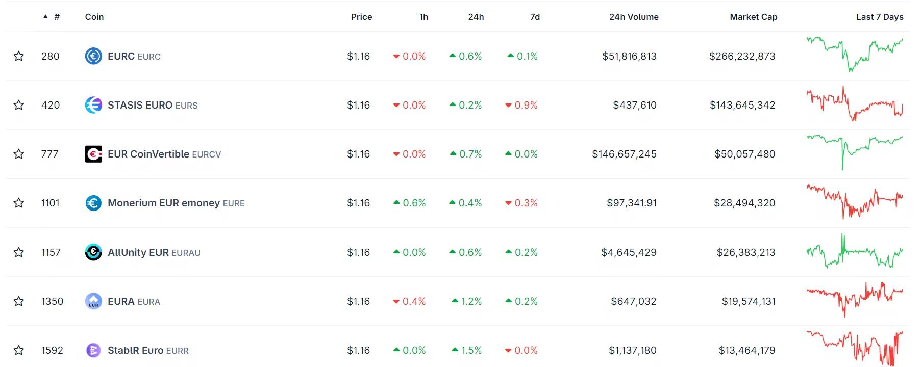 Meanwhile, euro-backed stablecoins only contribute around $573.9 million out of the total $306 billion stablecoin market cap. The largest euro stablecoin is Circle’s EURC (EURC) with a market cap of $266 million. In second place is EURS (EURS), followed by EUR CoinVertible’s EURCV (EURCV).
