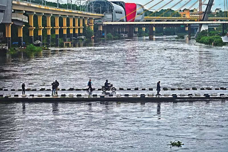 Pune: Environmentalists from Pune emphasised that civic administration and other authorities should urgently take steps to increase capacity of the Mula and Mutha rivers as the flood risk has gone up by 40% in the last 14 years in civic areas.The group of environmentalists, while speaking at a press conference, said many residential areas in Pune were submerged on Aug 20 as well as in July 2024 after the floods in the Mula and Mutha rivers. Thousands of citizens residing along the riverbanks had to be relocated. A risky situation was created even when dams released relatively less water.The group filed RTI and as per the information collected by them, the water resources department (WRD) determined the blue flood line of Mula-Mutha in 2011 at 1,18,000 cusecs flow. This flood level is also known as the ‘warning level’. The blue flood line level near Bundgarden barrage is 542.45 m, which means a flow of 1,18,000 cusecs at Bundgarden barrage should pass without crossing the level of 542.45 m.In reality, according to WRD statistics, the situation is critical. Around 8am on July 25, 2024, a flow of 69,111 cusecs at Bundgarden reached a level of 542.6 m. In the evening of the same day, a flow of 88,888 cusecs reached a level of 543.40 m.On Aug 20, 2025, a flow of 71,408 cusecs at Bundgarden was flowing at a 542.70 m level.Essentially, a mark at Bundgarden barrage that must be crossed when the flow is at 1,18,000, is frequently being passed at just 58% of that flow. In other words, the flood carrying capacity of the river has reduced by at least 40%. “This is alarming for Pune city. And of course, the local administration is primarily responsible for this situation,” said Sarang Yadwadkar, an environmental expert.“Despite raising this issue at numerous occasions, politicians and administration have not paid attention. Common citizens have been suffering,” said Pushkar Kulkarni, an activist.“The administration and political leadership should take immediate scientific and sustainable steps to restore the rivers,” said Vivek Velankar of Sajag Nagarik Manch, a citizens’ group.According to the irrigation department, efforts have been taken for better management of flooding and reducing its probability. Surveys of the frequent flooding spots have been carried out and initiatives like desilting were conducted regularly.“The irrigation department and PMC have been carrying out joint projects to reduce the threats of flooding. These initiatives were aimed at increasing the carrying capacity of the rivers,” said Shweta Kurhade, a senior official of the irrigation department.