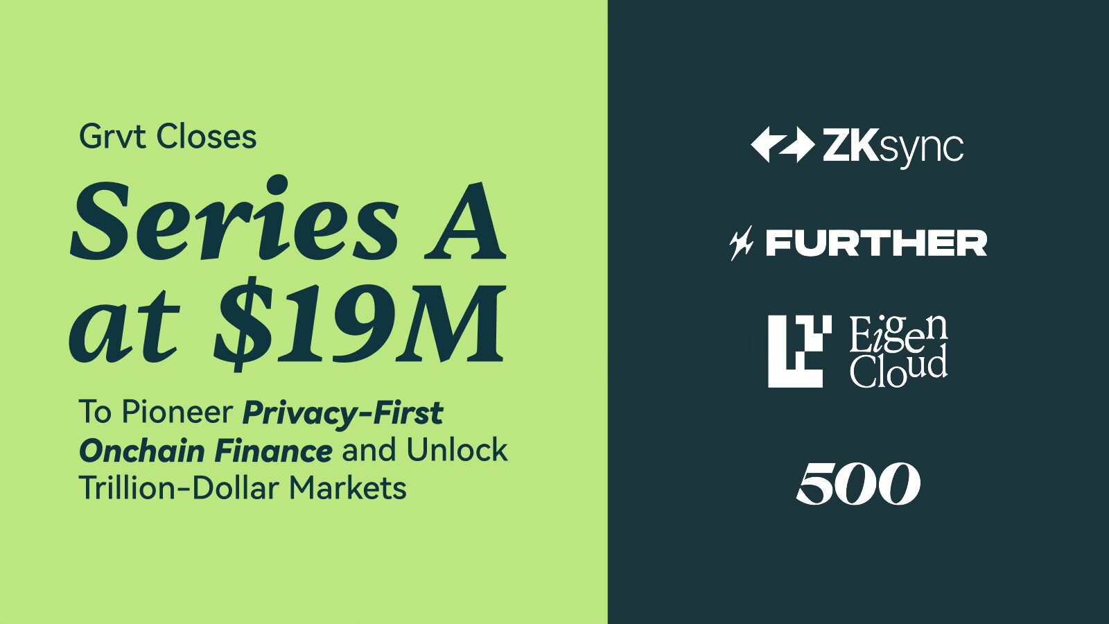September 18, 2025 – Panama City, Panama – Grvt, the preeminent DEX (decentralized exchange) for onchain financial privacy that is powered by zero-knowledge (“ZK”) technology, today announced the close of a $19 million Series A funding round.