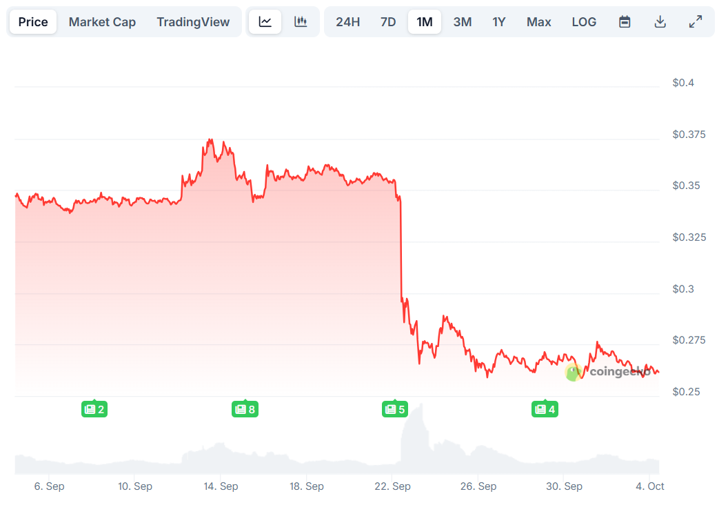 Despite the big Pi Network update and the substantial resurgence of the crypto market, Pi Network’s native token remains in red territory. It has plummeted by 25% on a monthly scale, currently trading at roughly $0.26 (per CoinGecko’s data).