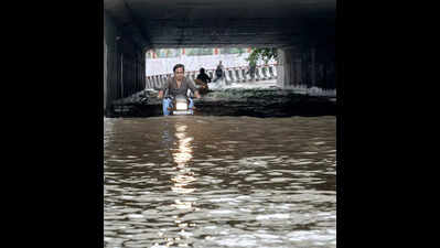 New Delhi: The heavy showers on Saturday upended many Raksha Bandhan plans for citizens. The roads were flooded, motorists had a horrible time and over 300 flights were disrupted. The inclement weather caught the city unawares as India Meteorological Department hadn’t predicted the scale of the rainfall on the day of an important festival.The rains began on Friday night. Between 2am and 5.30am on Saturday, the city’s base weather station at Safdarjung recorded 104.7mm of rainfall, 78.7mm of it till 8.30am. Pragati Maidan logged 120mm, Ridge 114.6mm, Lodhi Road 102.8mm, Pusa 101.5mm, Mayur Vihar 94.5mm, Ayanagar 58.2mm and Palam 54.5mm. Sporadic rainfall persisted till late in the evening.Trees were reported to have fallen in some areas and a road caved in in Vasant Kunj. In Jangpura Extension, resident of E Block, said, “A fully grown tree toppled over around 11.30am. It damaged my car parked outside my house and a part of the house as well. These are all old trees, and we have been requesting the civic authorities to get them pruned. But who listens?”The showers brought down the temperature by about 10 degrees Celsius, giving the city the lowest maximum temperature for Aug in 34 years. The maximum temperature at the base station Safdarjung was 26.4 degrees Celsius, eight below normal and a big drop from the 36.2 degrees on Friday. In Aug 1991, the highest temp was 25.8 degrees Celsius, the lowest on the records till date.The minimum temperature on Saturday was 23.8 degrees Celsius, three below normal and three degrees below the previous day’s minimum of 26.8 degrees.“There are three major reasons for the heavier than usual rainfall on Saturday,” said Krishna Mishra, scientist, IMD. “First, the monsoon trough shifted southwards and ran across Delhi. Secondly, there was a cyclonic circulation over north-west Uttar Pradesh and adjoining Haryana and Delhi. Thirdly, the winds from west Rajasthan, which were otherwise slow over the last four to five days, increased speed to reach 50-60 kmph and brought additional moisture from the Arabian Sea, feeding it to the cyclonic circulation. All these conditions fed additional moisture to the region and caused the heavy precipitation.”According to Mahesh Palawat of Skymet, the rain intensity will drop on Sunday but could increase on Monday again. IMD predicts light to very light rain on Sunday but hasn’t issued any colour-coded warnings yet. The maximum temperature on Sunday is expected to be 28-30 degrees Celsius.Meanwhile, the air quality improved from ‘moderate’ level to ‘satisfactory’ on Saturday. The air quality index, on a scale of 0 to 500, on Saturday was 81 or ‘satisfactory’, a big slide from 116 or ‘moderate’ a day earlier.