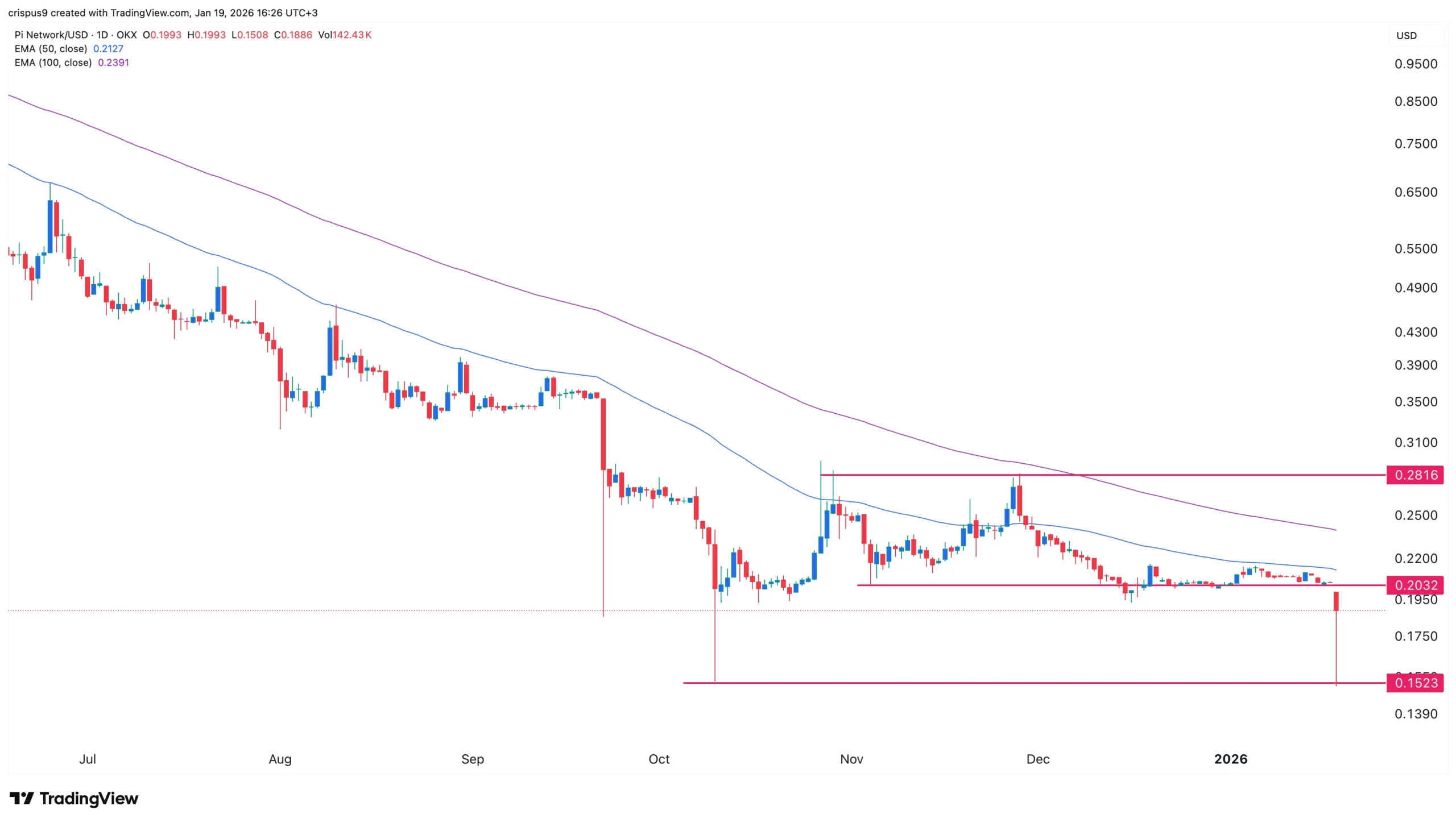 Pi Network price crashed to a record low of $0.1450, January 31, as the crypto market dived and as demand waned.