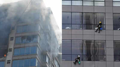 MUMBAI:A fire raged on Thursday in a 13-storey commercial building in Jogeshwari, which had flouted safety norms and allegedly lacked an Occupation Certificate.It took 8-10 fire engines and scores of fire brigade personnel four hours to contain the blaze at JSM Business Center in Behrambaug. There was no casualty though 27 people were rescued and treated at Jogeshwari Trauma Hospital for symptoms of suffocation.The cause is yet to be determined, but according to tenants, the builders had carried out illegal alterations in the structure at almost every level. A functional fire-fighting system was also missing.The fire at Jogeshwari’s JMS Business Owners Association broke out at 10.41am on the ninth floor before engulfing the top storeys up to the 13th floor housing a physiotherapy centre filled with patients. Anxious images of people waiting in balconies and waving their arms, shouting to be rescued, painted a shocking sight.“The building does not have an Occupation Certificate (OC) because the fire safety norms were not followed,” said Nilofer Parvaz, a member of the JMS Business Owners Association,who’s been campaigning to correct the situation. She then later registered an FIR at Oshiwara police station Thursday.Fire brigade personnel from Amboli arrived on site to conduct rescue and firefighting operations. Initially termed a Level-I fire, within minutes it escalated to Level-III. Once again, the double whammy caused by an external glass facade and numerous internal alterations proved a death risk.The 10-year-old building, developed by Sirajuddin Shaikh and Maqsood Jethwa, had 104 units but violated all norms for space utilisation, said shop owners and tenants.“The builders have not complied with regulations. They have not fulfilled fire norms, hence not received an OC. They have been exploiting buyers, and today, it is their negligence, rather greed, that has gutted so many offices,” said Nilofer Parvaz.Another shop owner Firoz Qureshi said the three-storey parking area had been rented out for commercial use as well. “One lift had actually collapsed to the ground. Recently, the lifts were not working for up to two months. People had to climb up to 13 floors. I granted a few staffers permission to work from home,” he said. “The basement has been given to Zepto for its storage hub. The firefighting system is dysfunctional. No fire sprinklers are installed, and there is no adequate space for small fire vehicles to enter. There is zero safety compliance.”Parvaz said there was no provision for water either. “Builders like this should be banned. Even after Thursday’s fire, they did not care to visit the building. Their architect came and simply said they have applied for OC,” she said.Chief fire officer of Mumbai, Ravindra Ambulgekar, who was personally manning firefighting operations, said 8 or 10 fire tenders were deployed. Businessmen like Rehan Tejani, who had stocked goods for Diwali season, watched their wares worth crores go up in smoke. “I did not keep my goods in warehouse fearing damage by stray crackers. Who would have thought they would be destroyed in my office,” he sighed. “The cause of fire will be determined after probe. But we will issue notice to the building for the lack of a functional firefighting system,” said Ambulgekar. “The building was not centrally air-conditioned, so we had to break the glass facade for ventilation. There was heavy smoke logging. Besides, the terrace was locked,” said a fire official. “While a stray firecracker is suspected, it will require forensic investigation.”