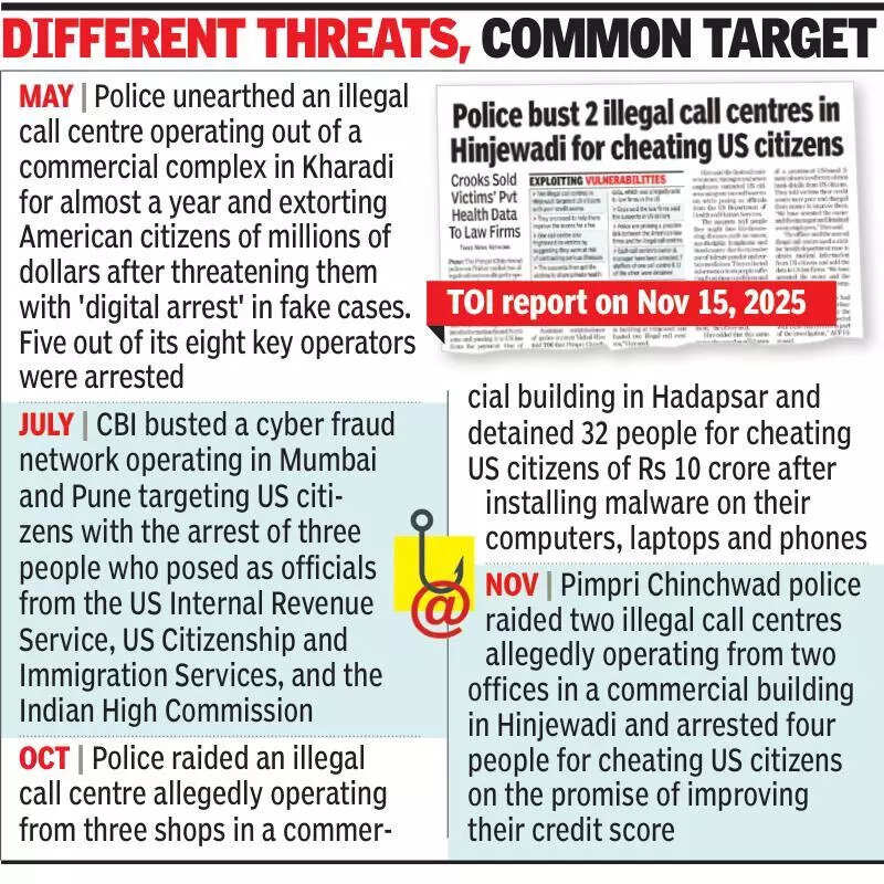 Pune: Koregaon Park police on Wednesday claimed to have busted an illegal call centre involved in cheating citizens of the US by promising them cheap loans, following the arrest of five people, including a woman, during an early morning raid. The call centre was operating from a flat in a housing society in lane no. 6 of Koregaon Park, police said and added that five laptops and 10 mobile phones were seized.Senior police inspector Sangita Jadhav said, “We have arrested a woman (24) from Nagaland, a man from Meghalaya, and three men, who hail from different parts of Pune city. All were found running the illegal call centre. In their preliminary questioning, the five suspects told us that they had been operating the facility for the last one month.”Sub-inspector Shrikant Chavan and his team, along with some cyber experts, carried out the raid based on a tip-off. The arrested five were found operating their laptops and mobile phones on a dining table and sofa sets inside the flat. “Our team is examining the seized laptops and mobile phones. The scope of the illegal operation, in terms of money and the number of people cheated, will be clear once we are through with the verification and analysis of these gadgets,” Jadhav said. She said that investigation revealed that the suspects had a database of US citizens, who had poor credit ratings. They would contact such people and ask them if they were in need of a loan at a cheaper interest rate, Jadhav said.“It was all scripted. Once a US national showed interest in securing the loan, the suspects would take down his banking details along with the PIN. Later, they would transfer these details to their handlers, who, we suspect, are based either in the National Capital Region of Delhi or in the US. The handlers would then siphon off money from this bank account,” the police officer said.Jadhav said not everyone contacted by these five people would share his or her bank account details along with the PIN. “The arrested people got 10 US dollars from their handlers for each successful ‘target’,” she said. Police are now focusing on tracing the handlers and establishing a money trail.