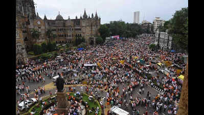 Mumbai: The faceoff between Maratha reservation activist Manoj Jarange and the state govt threw road traffic, work, study and business out of gear in the city.The BMC headquarters, located opposite the protest site of Azad Maidan, shut most of its gates with only two kept partially open.The quota supporters from Marathwada, Vidarbha, Satara, Sangli, Pune and Junnar had taken over the lanes around the civic office and were seen cooking as well. Some sat on footpaths and others stayed put in their trucks owing to continuous rain. Groups of men were sitting on the footpath outside J J School of Art and preparing dinner. Small groups who had arrived from villages in four-wheelers, were eating sabzi and rice.They declared they would not leave until their demand for reservation was fulfilled. Despite heavy rain, the protesters pledged to continue their agitation, sitting in the open and braving the weather. “We will not leave Mumbai until Jarange himself tells us to return,” one of them said.Fifty-nine-year-old Vitthal Ambhure, retired from a private job a year ago, arrived from Chhatrapati Sambhajinagar by train with a group of 10 unrelated protesters. He was eating food he had brought along the roadside of the protest area. Ambhure said, “I am prepared to live in the same condition for a couple of days so that the govt gives OBC certificates to all Marathas from my district along with others who are left out. My fight is for our next generation.”A 30-year-old farmer from Parbhani said reservation would help them in education and jobs. “My cousin who scored 80% couldn’t get a govt job but her classmate got the job with 60% marks under a reserved category,” he said.Tiasha Bose, a postgraduate student at Xavier’s Institute of Communications (XIC) in Fort, who also lives in the vicinity, said she was unable to order a memory card through an online delivery app as the area was marked “undeliverable” due to the protests.“There were thousands of protesters around, so I assumed the delivery person would have found it difficult to reach,” she said.In Breach Candy, residents were shocked to see crucial roads blocked for a certain period of time on Friday afternoon. Nigum Lakhani, a Breach Candy resident, said, “Maratha Morcha protesters around 12.30pm blocked south-bound parts of the Coastal Road just along Amarsons Garden.”Several organisations had to cancel events scheduled Friday evening, and allowed employees to leave office early. Kitabkhana, a bookstore in the Fort area, rescheduled a book launch “due to unforeseen circumstances”. An event in the Chhatrapati Shivaji Maharaj Vastu Sangrahalaya (CSMVS) was also cancelled, citing the same reason. The CSMVS website in fact said the museum was closed until further notice.