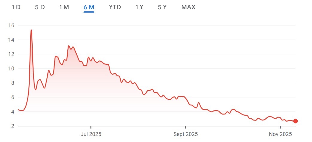 The move comes after a wave of losses hit Japan’s DATs, many of which attracted retail investors earlier this year. Metaplanet, Japan’s largest DAT, holding over 30,000 Bitcoin (BTC), saw its shares fall from a year-to-date (YTD) high of $15.35 on May 21 to $2.66 at the time of writing. This marked an 82% drop from its highest value this year.