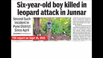 Pune: A leopard hiding in a sugar cane field killed a five-year-old girl who was on her way to give water to her grandfather working in a farm 300 metres from their house at 10am in Pimparkhed village at Shirur taluka, about 75 km from Pune, on Sunday.The girl, Shivanya Nilesh Bombe, sustained severe injuries to her neck and hand. She was rushed to the Manchar Civil Hospital, where doctors declared her dead on arrival.Her uncle, Ganesh Bombe, told reporters: “Shivanya’s grandfather, Arun, witnessed the attack. He tried to save her, but the leopard had already inflicted serious injuries before disappearing into the fields.”The girl’s parents are farmers. They have another daughter younger to Shivanya. Family members said they had spotted leopards in the area before and their dog was attacked around two weeks ago.This was the second death in a leopard attack in Shirur and the third in Pune district, this year.Earlier, on Sept 24, a six-year-old boy studying outside his house was killed by a leopard in Chincholi village, Junnar. In April, an 85-year-old woman sleeping outdoors because of the scorching heat was mauled to death in Shirur’s Inamgaon. That apart, two people were injured in leopard attacks in the district, this year.In the fiscal year 2024-25, Pune district had reported nine deaths and nine injuries in leopard attacks.A senior forest official said leopards frequent Pimparkhed village and its surroundings. At least three deaths in leopard attacks have been reported in Pimparkhed and nearby Jambut village in the past. “We have set up a base camp near Pimparkhed for swift response. Additionally, three cages have been installed in the area to capture the big cats,” forest assistant conservator Smita Rajhans told TOI.Meanwhile, the area where the incident occurred on Sunday is surrounded by sugar cane fields, making it prone to leopard activity. Rajhans said forest authorities would install 10 more cages and trap cameras in the village to catch the big cat.Former Lok Sabha MP of Shirur Shivajirao Adhalrao Patil visited the hospital to meet the family. He said leopard attacks are frequent in the region and demanded a long-term solution. “Sterilisation of leopards is the only viable solution, but no concrete steps have been taken so far,” he added.