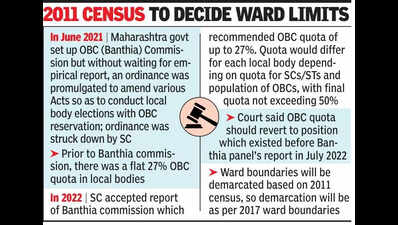 Mumbai: Paving the way for local body elections in the state with a 27% quota for OBCs, Supreme Court on Monday confirmed its May 6 directions on OBC reservation in these elections and also ruled that the 2017 ward formations will apply. It directed the State Election Commission to issue the notification for the local body polls within four weeks.Hearing a petition challenging the ward restructuring of the Ausa municipal council in Latur district and demanding that it be reverted to the pre-March 2022 structure, the top court affirmed that it is the exclusive prerogative of the state govt to define ward boundaries, reports Clara Lewis.The SC on Monday dismissed pleas seeking to revert to the earlier ward demarcations (as decided by the Maha Vikas Aghadi, which had increased the number of wards in municipal corporations and district councils based on the projected population), making it clear that the local body elections will be conducted based on the revised boundaries as approved by the state govt. It also rejected another petition challenging the 27% OBC electoral reservation in local bodies, confirming its earlier stance that elections could be held with the OBC quota in place.CM Devendra Fadnavis said the apex court has accepted suggestions of the state govt on both ward boundaries and OBC reservation. “The petition sought that the ward formation done in 2022 by the Maha Vikas Aghadi govt be implemented for the elections. However, our govt already scrapped the decision. We said ward formation would follow the 2017 format, which has been accepted by the court,” he said. The CM also said the SC had confirmed its earlier directions on OBC reservation. “The OBC reservation will apply in all districts,” he said.In an earlier hearing, the SC had expressed displeasure over the long delay in conducting local body elections, even questioning the intent of the State Election Commission. It had on May 6 directed the commission to complete the polls within four months.Earlier, Fadnavis said the local body elections will be held in phases: the zilla parishad elections in one phase, the nagar parishad and nagar panchayat elections in the second, and the municipal corporation elections in the third. The entire election process is expected to be completed by the year-end.State minister and NCP politician Chhagan Bhujbal hailed the SC order. “The top court’s decision removes significant hurdles in the implementation of OBC reservation in local self-governance bodies,” he said.Bhujbal further said, “The ruling has reinforced that the elections would proceed based on the newly notified ward/constituency boundaries and reaffirms that the elections would proceed as per the May 2025 order, ensuring that the 27% reservation for OBCs remains intact.”The BMC House’s term ended in March 2022. Since then, the municipal chief as administrator has been overseeing functioning of the corporation. Elections have been pending in 29 corporations, 248 municipal councils, 42 nagar panchayats, 32 zilla parishads and 336 panchayat samitis. Initially, local body polls were delayed on account of Covid lockdown. Then, court cases regarding OBC quota and number of wards added to the inordinate delay.