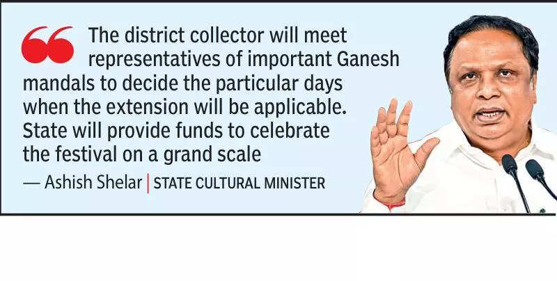 Pune: State cultural minister Ashish Shelar on Wednesday announced a relaxation in the use of loudspeakers which may be played till midnight for seven days in Pune during the upcoming Ganesh festival.Shelar visited the city on Wednesday to meet district administration officials and discuss preparations for Ganeshotsav — which was accorded state festival status in the monsoon session of the assembly, recently.Elected representatives and Ganesh mandals had been demanding an extension in the timing till when loudspeakers may be played during the festival. Shelar announced a relaxation till midnight for seven days, as against the five days allowed earlier, in Pune.According to the Supreme Court directions, use of loudspeakers is banned after 10 pm. The Noise Pollution (Regulation and Control) Rules says state govts have the right to select 15 days in a year when a relaxation to use loudspeakers till midnight may be given by collectors for their respective districts.After the meeting, Shelar said, “The district collector will meet representatives of important Ganesh mandals to decide the particular days when the extension will be applicable.”That apart, Shelar also said the state will provide funds to celebrate the festival on a grand scale. “Mandals will be encouraged to depict the success of Operation Sindoor, to promote Swadeshi and showcase the life of Chhatrapati Shivaji Maharaj through their decorations,” he added.The minister also said special attention would be given to Ganeshotsav in Pune — the city where Lokmanya Tilak started the festival on a community level. “The festival is celebrated in a traditional manner in Pune and is popular worldwide. We have decided to livestream activities of some important Ganesh temples and mandals so that devotees from across the world can feel connected,” Shelar added.