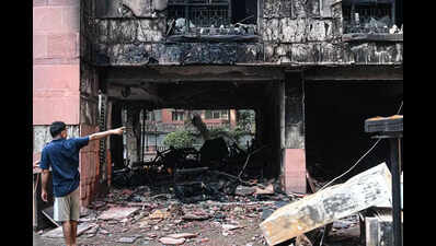 New Delhi: Three women, including two sisters, were injured after a fire broke out at Brahmaputra Apartments on Baba Kharak Singh Marg in Lutyens’ Delhi. The victims, all of whom sustained minor injuries, were identified as Madhu (19), her sister Jeevika (15) and Madhumati (34). The fire broke out at 1.22pm and 14 fire tenders with 90 firefighters were sent to the spot. The blaze was brought under control by 2.10pm. A fire official said the blaze started in an open parking area, which allowed it to flare up quickly as it received a continuous supply of air. The complex houses 24 members of Parliament, with staff quarters occupying a few floors of each of the eight-storey buildings while the MPs live on the upper floors. According to residents, the fire affected the three floors of the staff quarters in one of the towers. Each floor has eight quarters, and at the time of the incident, more than 70 people were on these three floors. Tarun, a 35-year-old eyewitness, said Central Public Works Department (CPWD) had stored old furniture and sofas in the parking area, which fuelled the fire. “What I heard is that a spark from firecrackers may have triggered the fire. Children were playing and bursting crackers nearby,” he added. CPWD claimed that the incident took place in the stilt area, where some unserviceable furniture, lined up to be disposed of, was stacked. The civic body claimed that the fire started from the ignition of firecrackers in the vicinity and its officials had promptly cut off the power supply and IGL gas connection to the building and ensured swift evacuation of residents.Police officers also said they were told that old furniture was stored in the area and the fire might have started from there. A case has been registered and police are trying to determine the exact cause behind the fire. The fire department is verifying if the building has a valid no objection certificate.Madhu, one of the injured, said she and her sister Jeevika were trying to escape when burning wood fell on them. “We were at home when we heard a loud scream from a neighbour. We came out and rushed downstairs to save ourselves.” She sustained injuries on one of the hands while her sister received injuries on the hands and legs. Their pet dog, trapped in a bathroom, was later rescued by firefighters, its fur blackened by smoke, Madhu added.Madhumati, who lives next door, said, “I had fever and was sleeping when I suddenly woke up by noises. When I stepped out, I was engulfed by thick black smoke and could hardly see anything. While escaping, a burning piece of wood fell on me,” she said. Residents pointed out that there was only one escape route, which was difficult to access due to heavy smoke.