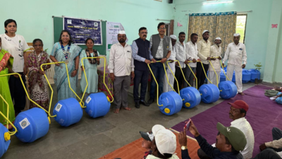 PUNE: On behalf of the Rotary Club of Nigdi, 100 rolling drums were distributed to the villagers of Kharoshi, Valad, and Avhat (Tehsil Khed) for water transportation. Additionally, a solar energy project was inaugurated at the Anand Kapoor Training Center of the Shashwat Institute in Borghar (Tehsil Ambegaon). The institute runs a hirda and spice processing center for the tribal community, which struggled to pay electricity bills, said a statement issued by the Rotary Club.Therefore, the Rotary Club installed a solar energy project. Present at the event were Club President Suhas Dhamale, Service Director Ashwin Kulkarni, Jayant Yewale, Sonali Jayant, Dhanashree Kulkarni, Shashwat Foundation Trustees Suresh Rajwade, Ashok Adhav, Pratibha Tambe, Sumant Singh, Sulatai Gawari, and other dignitaries.The villagers were delighted to receive the rolling drums, as these would greatly assist in making their lives easier and more comfortable, expressed President Mr. Dhamale. On the occasion of World Environment Day, tree planting was carried out in the Borghar area, added the statement.