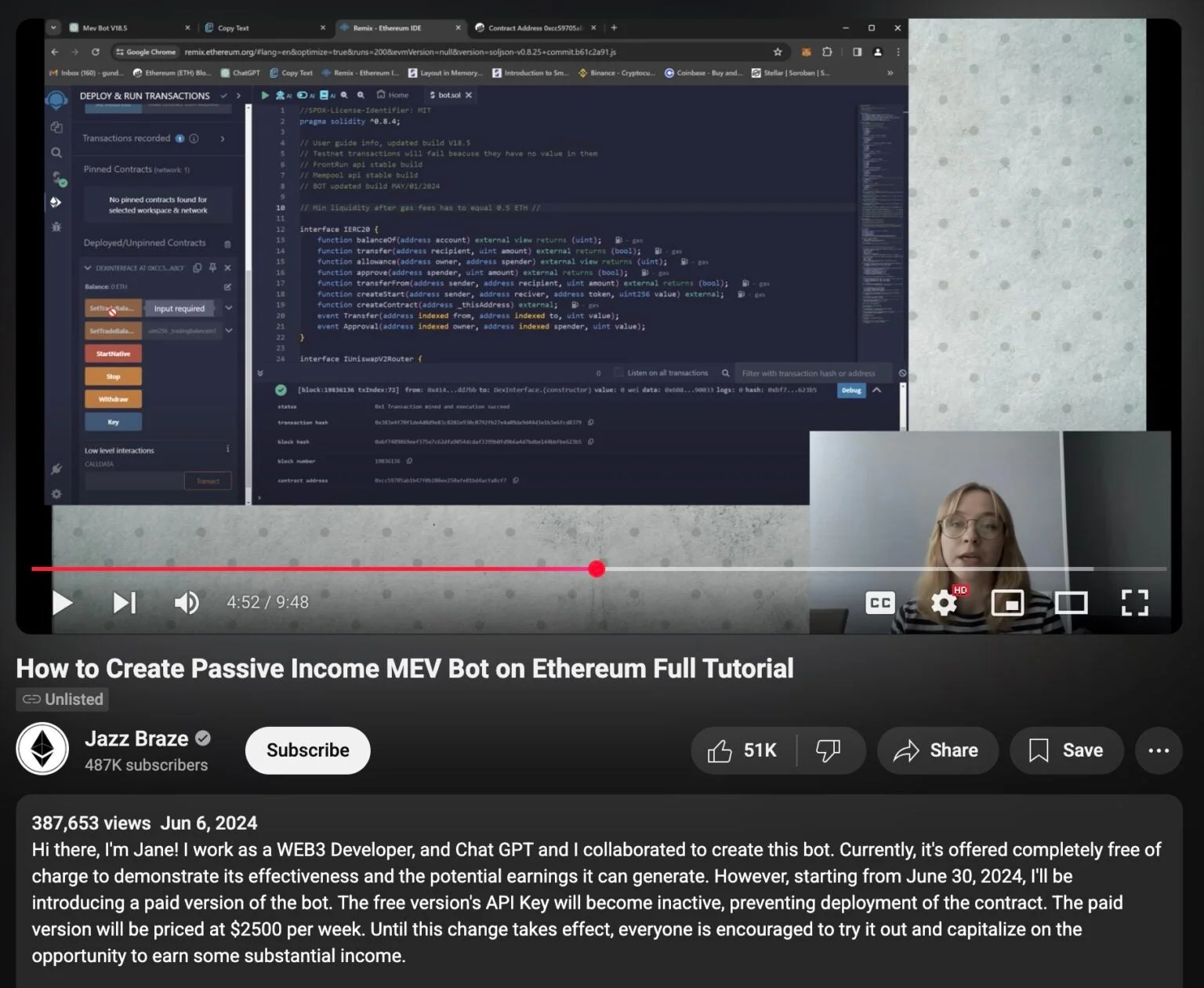 Viewers are told to deploy the code on platforms like Remix, a popular Ethereum development environment, under the pretense of activating a so-called arbitrage or MEV (Maximal Extractable Value) bot.
