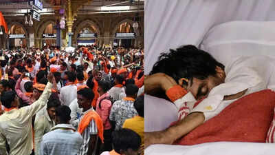 NEW DELHI: The Bombay high court on Monday said the Manoj Jarange-led Maratha quota protest has violated conditions, calling it “not peaceful” and noting that the entire city had been brought to a standstill, with vital areas in South Mumbai surrounded by protesters.The court noted that Jarange and two other organisers have allegedly violated the conditions of permissions granted for the protest and currently hold no valid permission to continue. HC directed the state government to initiate appropriate action under the law to restore public order, enforce the High Court order, and apply the Public Protest and Agitation Rules of 2025. “Life of the common man of Mumbai needs to be restored to normalcy. The city cannot be brought to a standstill, especially with Ganpati festival is still on” the court said. It gave Jarange and his organisers an opportunity to vacate roads and other blocked areas—except for designated protest sites—by noon tomorrow.The protest, now in its fourth day, has drawn an estimated 35,000–45,000 participants, arriving in over 650 vehicles including trucks and tempos, stretching from Azad Maidan to Hutatma Chowk and P D’Mello Road. Traffic diversions have been imposed across South Mumbai. Roads outside CSMT were closed, with JJ Marg traffic rerouted via MRA Marg police station to the Police Commissioner’s office and onwards to Metro Cinema junction. Eastern Freeway traffic may also be diverted and north-bound DN Road vehicles are being directed towards Fashion Street and Metro Cinema. At CSMT, protestors sought shelter from rain, but train operations continued normally thanks to RPF and GRP deployment. Intercity trains remain on schedule, though officials warned of possible short delays due to road congestion. Protest leader Manoj Jarange Patil, continuing his indefinite hunger strike, announced he would stop drinking water from Monday to intensify his agitation. “Till Marathas get reservation under the OBC quota, we will not leave Mumbai,” he said, urging followers to remain peaceful and advising them not to give money to middlemen.CM Devendra Fadnavis reiterated that while the government was committed to addressing community concerns, it could not act against the Constitution.