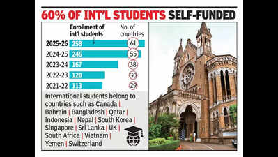 Mumbai: Mumbai University (MU) has recorded a 128% rise in international student enrollments over the last five years. While in the academic year 2021-22, a total of 113 international students had enrolled with the university and its affiliated colleges, the corresponding numbers this year, in 2025-26, have grown to 258. The university’s international student base has broadened considerably with representation from countries such as the UK, Canada, South Korea, Philippines, UAE and Switzerland, among others. Students now come from 61 countries, up from 29 about five years ago.A majority of students who have enrolled this year, over 60% are self-funded, while the remaining are on scholarships through MoUs with the International Council for Cultural Relations (ICCR). Apart from university’s own departments, where the students have enrolled for master’s programmes in psychology, sociology, mass communication and social work, the students have also picked affiliated colleges for undergraduate programmes. The interest is more towards courses such as BSc in IT, computer science, biotechnology, and even in BCom in accounting and finance, financial markets, said a university official.Two students from Thailand, Natnapa Sukmee and Hongleart Kobponchareon, have enrolled in the university’s MA Hindi programme under the ICCR scholarship. “There is a lot of interest in Hindi and Indian culture among Thai people, but there are very few teachers available to teach the language. We had learnt basic Hindi back home and plan to return to Thailand to teach it in our country,” said Sukmee. She added that her love for Indian culture and the hospitality of its people prompted her to choose India for her master’s studies. Aavishkar Avinesh Ratnam, from the Fiji Islands, left a high-paying job at a distillery to pursue higher studies in India. His great-grandparents, originally from Tamil Nadu, had migrated to Fiji as British indentured labourers to work on sugar plantations. “I have never been away from home before, but the fact that I was coming to India reassured my parents. I plan to pursue a PhD after completing my master’s in physics. For me, this is also about connecting with my roots, since I have always identified myself as Indian,” he said. The university has been working on making a conducive ecosystem for foreign students through a single-window system and also offers various student support schemes. It conducts around 13 ‘Study in Mumbai University’ awareness programmes a year. AN official said that the university has been actively participating in national campaigns, and also engaging in cross-border marketing through digital outreach programmes, offering courses at affordable fees to attract more students. Efforts are also being taken to offer joint degree programmes with international universities.