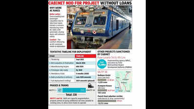 Mumbai: Tenders for the procurement of 2,856 air-conditioned suburban coaches for Mumbai — equivalent to 238 twelve-car trains — are likely to be floated this month. The state cabinet on Wednesday approved Rs 4,826 crore for the Rs 21,000-crore project under Mumbai Urban Transport Project (MUTP) Phases 3 and 3A at a meeting chaired by the CM. Unlike earlier plans that considered external borrowings, the entire project will now be funded entirely through contributions from the Railway Board and the state govt, instead of through loans. Both will share costs equally, with the state’s initial share pegged at Rs 2,413 crore. The proposal will be placed before the Union cabinet for approval. The funding formula ensures that the rakes will be built under the Centre’s Make-in-India guidelines. The cabinet also cleared 50% state participation in MUTP-3B, which covers major capacity enhancement works, and sanctioned funds for the Pune-Lonavala suburban third and fourth line project.Mumbai Railway Vikas Corporation (MRVC), the project’s implementing agency, has said it will finalize a bidder in six months. Manufacturing will take two years, with the first prototype rake expected in 2028. After six months of mandatory trials, bulk production will follow. MRVC chairman and managing director Vikas Wadekar said, “We hope to float tenders this month and other approval processes can run in parallel.” Railways had maintained that if external loans were tapped, tender conditions would not permit adherence to Make-in-India norms. In addition, central guidelines bar firms from countries sharing land borders with India from participating in such contracts on security grounds. Multilateral lenders generally discourage such restrictions in competitive bidding, which would have made enforcement difficult.The state govt concurred with the railways’ stand, clearing the way for domestic manufacturing of the entire suburban fleet.