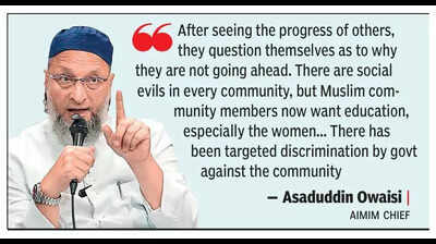 Pune: AIMIM chief Asaduddin Owaisi on Tuesday said Muslims will never exceed the Hindu population in India, but a wrong perception is being created against the community. Owaisi was speaking at a meet-the-press event organised by Pune Working Journalists Union (PUWJ) on Tuesday, where he spoke about the challenges the community faces and accused the central govt of creating obstacles in its progress.He said the latest national family health survey shows that the total fertility rate in Muslims dropped significantly and added that the community wants progress through education. Owaisi said, “After seeing the progress of others, they question themselves as to why they are not going ahead. There are social evils in every community, but Muslim community members now want education, especially the women.”He said that a false narrative is being peddled that Muslims only go to madrasas. “They go there mostly to learn about religion. The other reason for them to go is that govt is not setting up schools in Muslim areas. There has been targeted discrimination by govt against the community,” he added.At a public rally in Kolhapur on Monday, Owaisi criticised the central govt over India-Pakistan matches in the recently concluded Asia Cup. “After the Pahalgam terror attack, India launched Operation Sindoor and destroyed terror sites and banned Pakistani flights from using our airspace. While we were taking several steps against Pakistan, we should not be playing cricket with them. Prime Minister Narendra Modi himself said that blood and water do not flow together. He said that Operation Sindoor is still on, and in such a situation, why did we play matches against Pakistan?” Owaisi said.