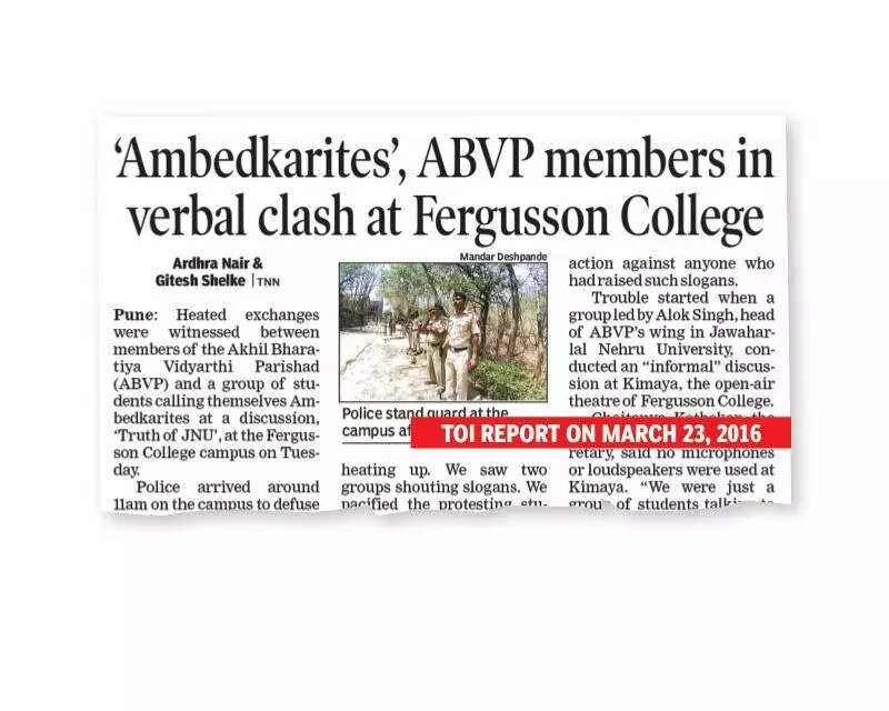 Pune: A special MP/MLA court in the city has allowed NCP (SP) MLA Jitendra Avhad’s revision plea by discharging him from a case of unlawful assembly, rioting, assault and other charges, arising from a clash between two groups of political supporters during an event at the Fergusson College (FC) campus on March 23, 2016.On Aug 22 this year, a magisterial court had rejected Avhad’s discharge plea, following which he moved a revision petition before the special court, which is presided over by an additional sessions judge. “Prima facie there is no evidence against the applicant/accused (Avhad) to frame the charges levelled against applicant/accused. He is bound to be discharged from the charges levelled against him,” judge Aniruddha Gandhi said on Oct 13 while referring to each of the charges mentioned in the chargesheet.“It appears that the learned magistrate has not appreciated the evidence properly,” the judge said with reference to the lower court’s impugned (under challenge) order.The clash was an outcome of back-to-back developments on March 22 and 23, 2016, on the FC campus after Akhil Bharatiya Vidyarthi Parishad (ABVP) activists organised an event called “Truth of JNU’. Another group of Ambedkarite and left-leaning students organised a counter-protest by chanting slogans supporting Rohit Vemula, a dalit PhD scholar at the University of Hyderabad whose suicide in Jan 2016 had triggered a nationwide outrage, and JNU student union president Kanhaiya Kumar.Avhad had reached the campus on March 23, 2016, to express his solidarity with the dalit group. The police charged him for offences under sections 143 (unlawful assembly), 147 and 149 (both related to rioting), 323 (causing hurt), 336 (act endangering life and personal safety of others) and 341 (wrongful restraint) of the Indian Penal Code.Lawyers Harshad Nimbalkar and Shivam Nimbalkar, representing Avhad, had argued that their client was forced to face an unnecessary trial on account of rejection of his discharge plea by the magisterial court. Moreover, their client did not say a word at the event, nor was any overt act attributed to him. On the contrary, he was the victim of stone pelting.The state had argued that Avhad acted in breach of a preventive order and was liable for every act committed by an unlawful assembly.The court, however, dismantled each and every charge by pointing out that Avhad was not present at the event on March 22, 2016, and hence could not have been charged for acts committed on that day. He was neither part of the groups led by the dalit or the ABVP supporters and there is no evidence in the chargesheet to show that he caused hurt to anybody. The charge of endangering life and personal safety of others was not applicable as Avhad himself was a victim of stone pelting, the court said.