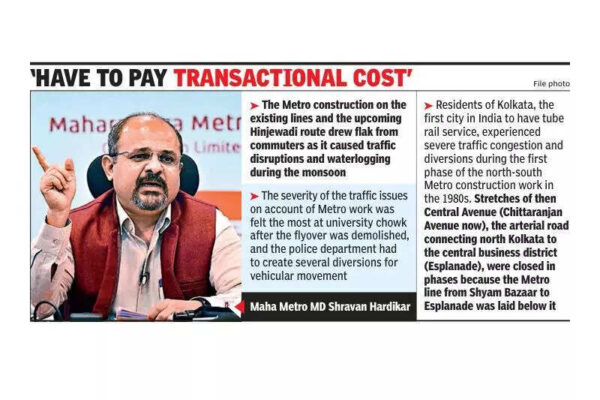 Pune: Maharashtra Metro Rail Corporation MD Shravan Hardikar said residents should prepare themselves for traffic disruptions caused by the next phase of Metro construction work.The next line of the Metro was critical as it connects residential areas of Khadakwasla, Sinhagad Road, Hadapsar and Wagholi with commercial centres such as Magarpatta and Kharadi.“I want to bring…