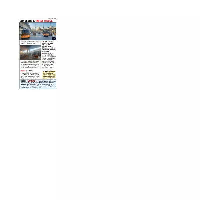 Pune: A 49-year-old pedestrian from Market Yard died after being run over by the front wheel of a PMPML bus near the Gadital bus stop on Pune-Solapur Road in Hadapsar around 11am on Wednesday, sparking widespread outrage among local residents, who highlighted growing concerns over the deteriorating traffic management and safety conditions in the area. The Hadapsar police identified the deceased as Suman Hanumant Kshirsagar, a homemaker. “Kshirsagar had visited Hadapsar for a sonography test because of back pain. After completing the test, she was walking toward the bus stop when the accident occurred,” senior inspector Sanjay Mogle of the Hadapsar police said.The senior inspector said the police had arrested the PMPML bus driver for rash and negligent driving, causing the death of the pedestrian. “The incident occurred when Kshirsagar and her relative were walking near the vegetable market. The bus had stopped to allow passengers to board. As the driver restarted and accelerated the vehicle, it struck Kshirsagar, causing her to fall and get trapped under the front right wheel,” Mogle said.The police suspected that the driver failed to notice the pedestrian while accelerating the bus. “He neglected to spot the woman, resulting in the bus hitting and running over her,” the officer said.Gadital, a key junction where two major roads converge, also serves as an important bus stand for local commuters. The residents said despite the Hadapsar police station being located right behind the bus stand, traffic violations in the area remained rampant, and encroachments on both sides of the road had significantly reduced its carriage width.The Gadital intersection connects the road towards Saswad and the Solapur highway, making it a common route for heavy vehicles. “While the Sant Tukaram Maharaj and Sant Dnyaneshwar Maharaj flyovers have eased congestion by providing a bypass for traffic, PMPML buses still need to pass under the flyover to access the bus stand. Due to limited space inside the stand and growing commuter demand, PMPML has introduced additional bus stops outside the main premises,” a resident said.Hadapsar division traffic inspector Rajendra Karnkot said, “We have requested the regional transport office, Pune Mahanagar Parivahan Mahamandal Limited and Pune Municipal Corporation to relocate autorickshaw stands and bus stops, and to demolish unauthorised structures to widen the road. Hawkers frequently occupy space beneath the flyover. We have asked the civic administration to remove these encroachments.“Regular commuter Nikhil Naik said, “There are two signals at the intersection, and one road is designated as one-way. Yet, two-wheelers and even buses often break signals or use the road in both directions. This creates a dangerous situation for commuters, as it’s impossible to predict vehicle movement. Minor accidents are common, and with traffic personnel rarely present, compliance with traffic rules is poor.“The commuters said traffic around the Gadital bus stand had become a daily ordeal, with the stretch, part of the busy Solapur Road corridor connecting Hadapsar Gadital to Dive Ghat, being heavily congested with buses, private cars and freight vehicles — especially during peak hours.In similar accidents in the area, a 75-year-old man suffered fractures to three toes on his left foot after a PMPML bus ran over him while he was waiting at a bus stop near Gadital Chowk in Hadapsar around 4.20pm on July 25. In another incident, a motorcyclist, Nivruti Kokate (65) from Pashan, lost his life when a water tanker rammed his bike from the rear at the bus stop around 5.10pm on Oct 15.